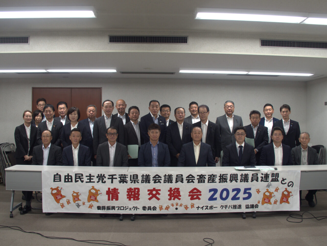 令和7年3月末に千葉県で初めて豚熱の発生が確認され、養豚密集地帯であっただけに衝撃が走りました。幸いにも、今までの活動が功を奏して、天候不順ではあったもののレンダリング装置の活用により他への影響もほとんどなく処理ができました。今回の情報交換会は、レンダリングについて、一人でも多くの県議会議員の先生方に養豚に係る情報の共有を頂くことを大きな目的として開催しナイスポークから青柳会長、菅谷会長代理、林・北田・熱田・飯田の各副会長、塩澤顧問、堀江アドバイザー、事務局の9名が参加しました。