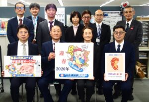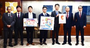予定されていた知事、副知事、及び農林水産部及び健康福祉部関連課長への挨拶を終え、畜産課に戻り記念撮影に臨んだ。