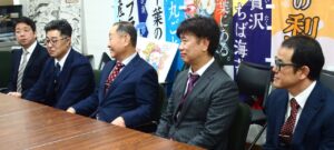公庫への挨拶は、午後1時過ぎに訪問いたしました。用意された別室で意見交換を行いました。円安による配合飼料価格の高騰、アフリカ豚熱の侵入リスク、中国人による問題(産業廃棄物処理、不動産購入、太陽光発電)、そして全国的に年末から支払いが厳しい経営状況も聞かれる状況を報告。また、法定伝染病発生処理に伴う補償問題もなかなか前に進まない。資金の有効活用について指導をお願いいたしました。