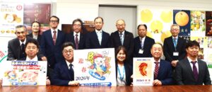 青柳会長から新年の挨拶、昨年12月3日に開催された「令和6年活動報告会」へご出席いただいた御礼を申し上げ、生産者として生産性向上と防疫対策の強化に努力いたしますので、変わらぬご指導をお願いいたしました。知事から「養豚は県の重要な産業、安定した生産に頑張って欲しい」とのエールをいただきました。