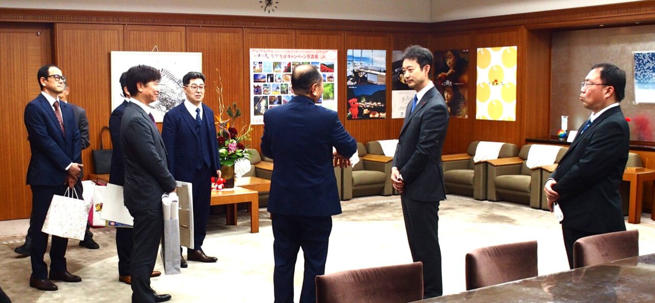 例年行われる知事への年頭挨拶は、青柳耕一会長、菅谷知男会長代理、副会長3名(林 浩之、北田好克、熱田 力)他事務局加藤の6名が参加いたしました。10時に畜産課に出向き時間調整後に熊谷知事執務室を訪問いたしました。